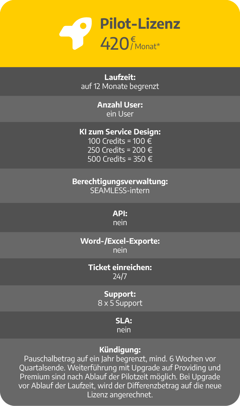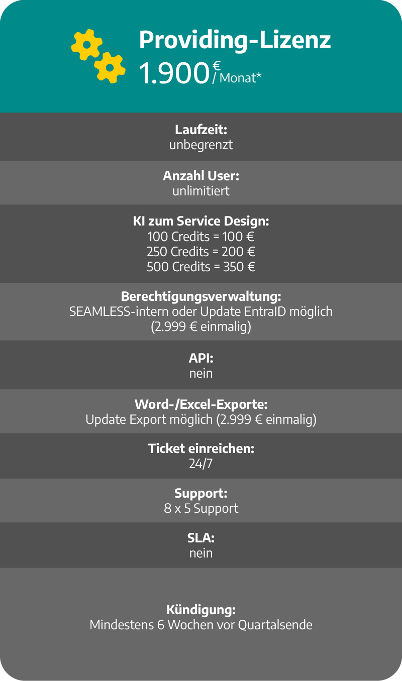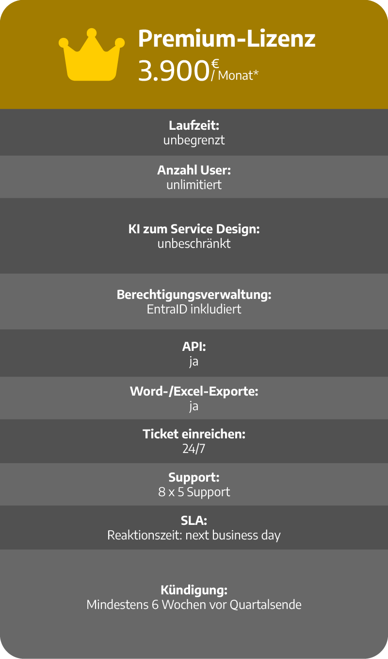 *alle Preise zzgl. MwSt. Abrechnung erfolgt quartalsweise.